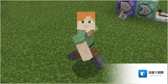 如果这时我们站在下图的红色地毯上,面向普通方块,想移动到普通方块上的话,是需要左移1格、前移3格、上移1格的。
