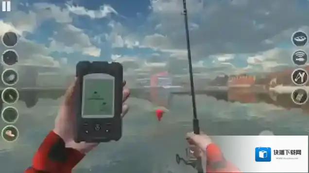 3、拖动右侧的虚拟摇杆,可以选择垂钓的位置。