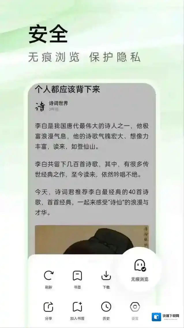 1、提供了无痕浏览模式,开启后将不会保留任何浏览痕迹,确保用户的隐私安全得到充分保护。