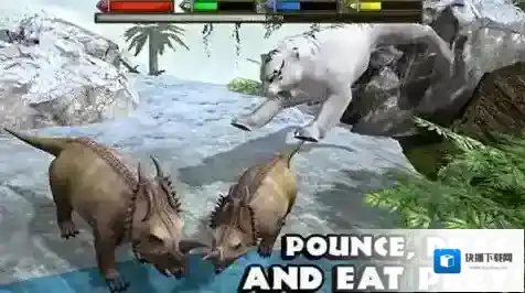 2、真实生存机制,恐龙需要维持健康,饥饿,口渴和耐力四项指标,玩家必须合理规划捕猎,饮水和休息时间,稍有不慎就会面临生存危机。