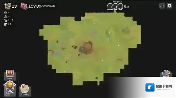 4、正式开始后左上角现实的是你的蚂蚁人口和食物,点击右下角的树桩可以进入你的蚁穴。