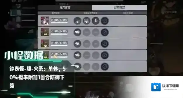 钟表怪-理-火系:单体,50%概率附加1回合防御下降