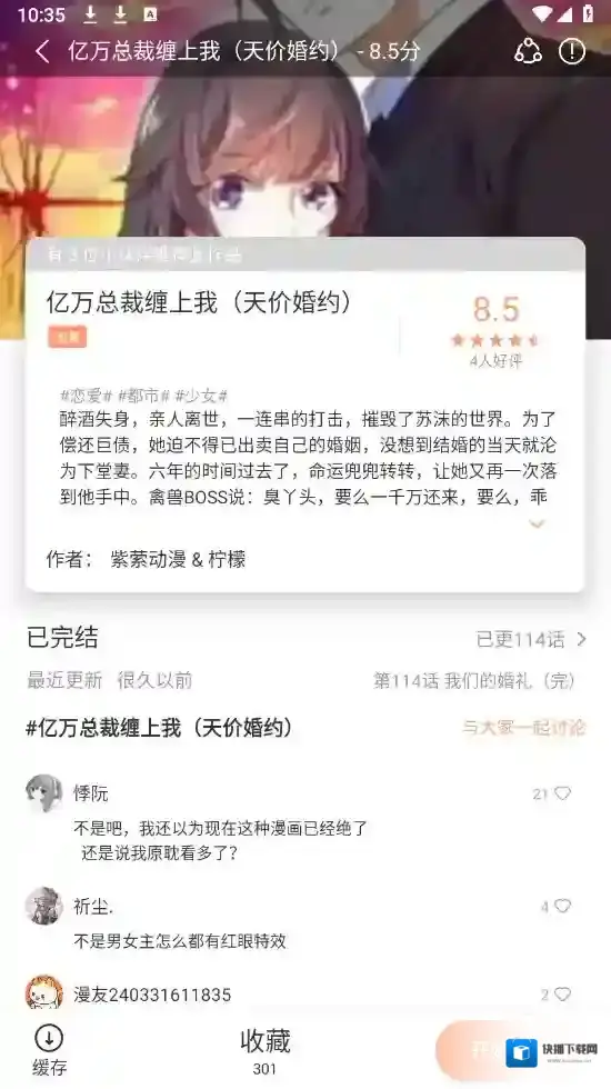 4、选择自己喜欢漫画点开,可以对漫画进行缓存、收藏以及开始阅读。