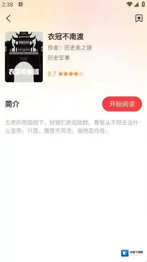 2、首页有很多的小说类型,言情、悬疑以及历史等类型。