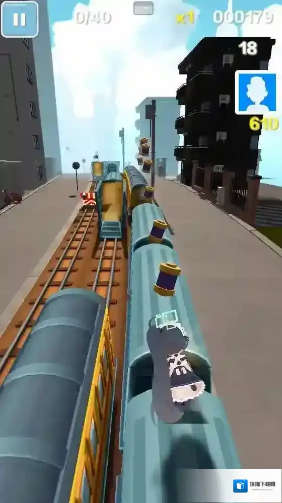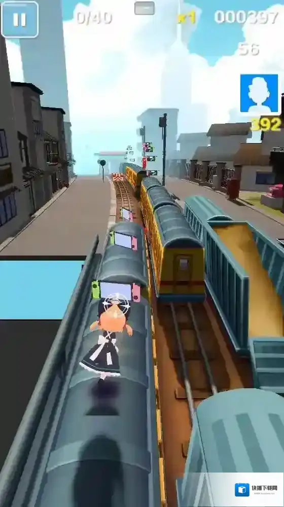 3、正式开始后左右滑动可以更改轨道,向上滑动是跳跃,向下滑动是翻滚。