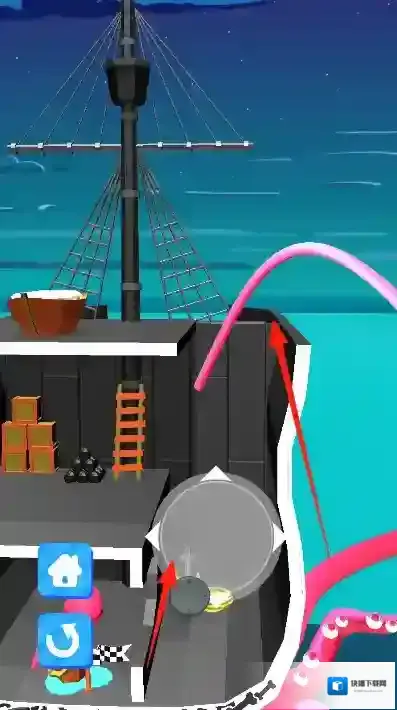 1、基础破坏玩法:滑动屏幕操控八爪鱼移动,点击触须瞄准船只薄弱部位(如桅杆、船舱),长按蓄力触发强力拉扯,直至船只完全沉没。