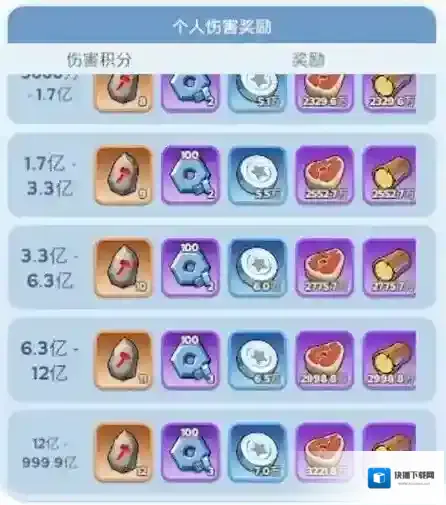 个人伤害奖励要求大致每档翻倍,但奖励的成长幅度远低于所需达成的伤害积分,因此,在达成目标奖励后,可以根据自己的期望值礼让给其他盟友,加入高战玩家发起的集结。