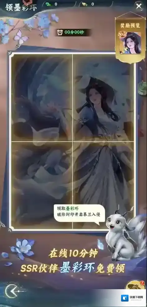 3、在线10分钟送大礼,SSR伙伴墨彩环免费领。