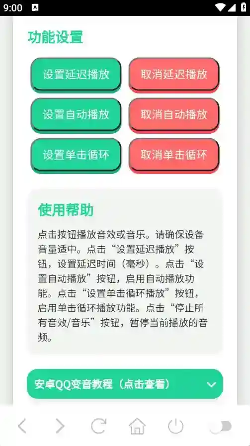1、点击按钮播放音效或音乐。请确保设备音量适中。
