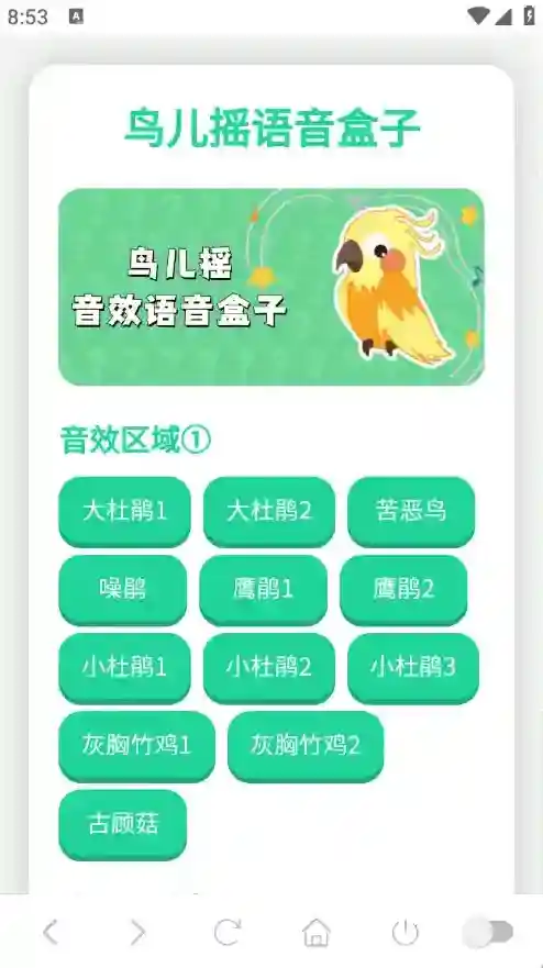 鸟儿摇演奏器,拥有很多的你敖烈鸣声音频,所有的语音包都是吗免费的,另外还会根据用户的喜好智能精准推荐,支持单击播放、循环播放以及延迟播放,还可以适用于游戏或者日常聊天中。