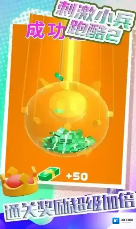 3、关卡中,跟随绿色箭头,指挥小兵(绿色)移动,躲避“鱿鱼游戏”风格挑战(如123木头人),通关积累金币。