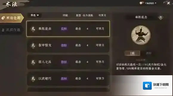 让武将学习合适的术法将会极大的增强武将们在战场上的作战能力。