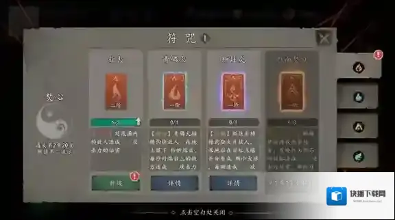 3、在关卡里右下角会自动生成各种属性的符咒让你使用,每次获得的符咒品质都是不同的。