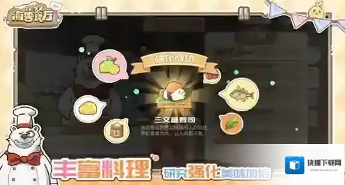 2、玩家可以通过研究各种料理配方,不断解锁新菜品,菜品范围从甜点到海鲜一应俱全。