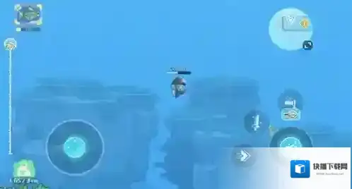 使用左侧摇杆控制角色移动,右侧按钮发射鱼叉捕鱼,注意角色氧气条,在耗尽前需返回水面。