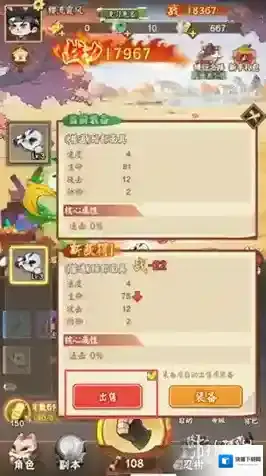 3、反之,若装备品质较低,则点击出售按钮将其出售,出售装备后可获得物资。