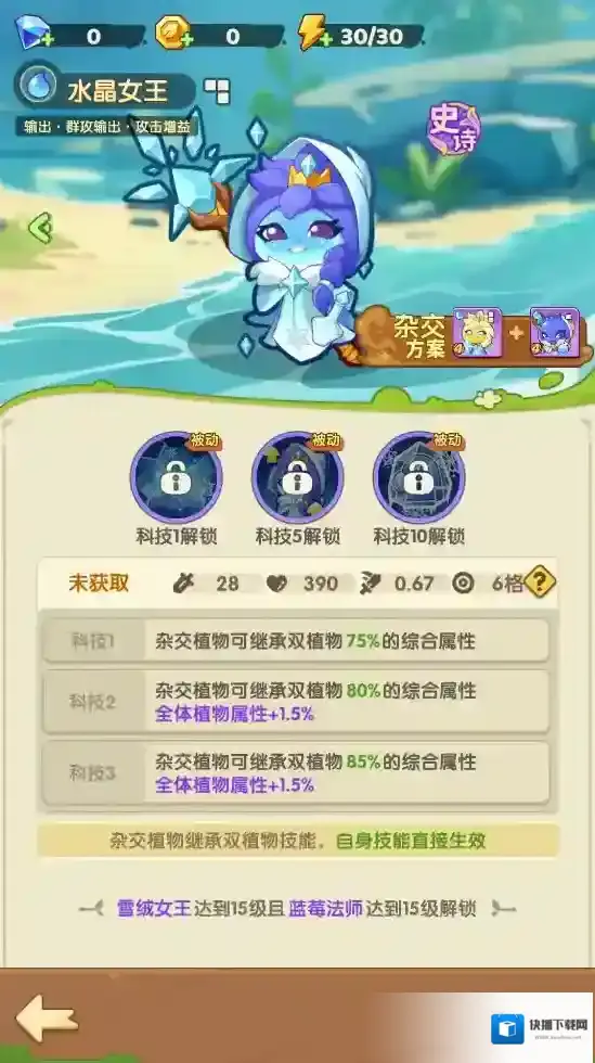 输出型与辅助型植物应先提升至15级,以增强其基础属性。