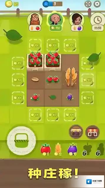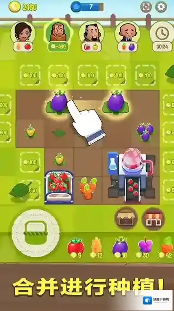 1、初期在小面积地块中种植基础蔬果,通过收集相同级别作物进行合并,解锁更高阶农作物与扩建权限。