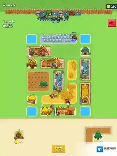 种田与征战(Farm Fight),一款玩法十分独特有趣的背包塔防类手游。游戏中与一般的背包塔防不同,在格子中放置的不是各种武器道具,而且各种农田和农场,通过采集各种资源,例如稻子、树木等,以此来生产出战士、弓箭手等不同类型的士兵,和凶恶的敌人展开激烈的战斗,消灭所有敌人之后就能够过关获得奖励了!通过不断推进关卡,我们还可以解锁更多不同类型的农场,生产更多类型的士兵,挑战更多强大的敌人!