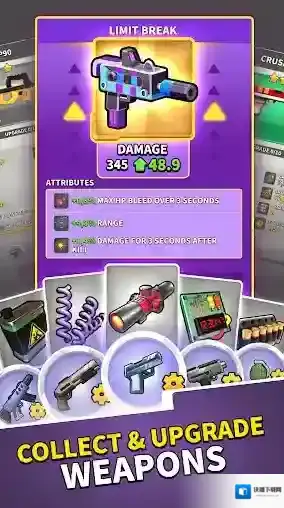 1、通过闯关我们还会获得宝箱奖励,开启宝箱就能获得随机的武器和材料,让你可以解锁升级更多武器,提高火力。