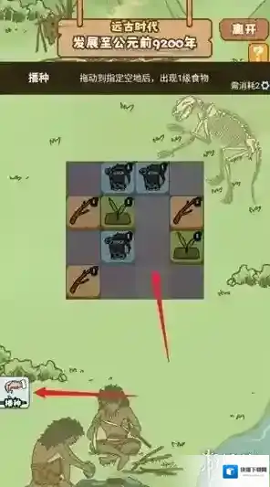 5、远古时代默认开放播种技能长按技能按钮拖拽至目标地格即可发动。