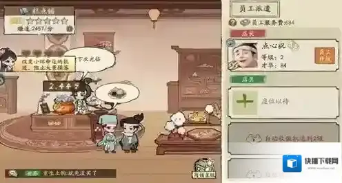 玩家可招募性格各异的帮工,如精打细算的账房先生、巧手能干的厨娘、机灵聪慧的跑堂等。