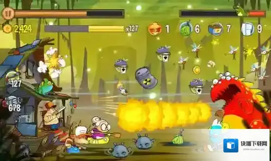 沼泽激战(Swamp Attack),充满了美式夸张风格的一款2D横版射击塔防游戏。游戏中的主人公生活在一片森林中,在他的小木屋周围有一片沼泽,沼泽中有着许多动物,随时都准备来围攻小木屋,玩家需要扮演主人公,拿起手中的枪械来保护小木屋,守住自己的领地!游戏诙谐幽默的风格正是吸引人的特色之一,例如主角虽然深陷包围,却也是从容的坐在小板凳上悠闲打靶,而且手持各种武器还会出现不同的呆萌表情,非常的有趣。游戏内有着丰富的关卡可以去挑战,并随着挑战还能用金币去升级武器提升战力,迎接更多的挑战!