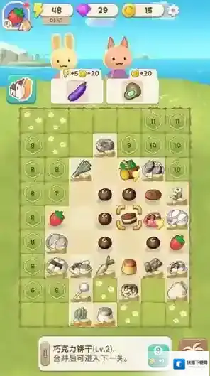 2、点击菜篮子来获得合并素材,将相同的水果或者蔬菜合并来获得更高等级的物品。
