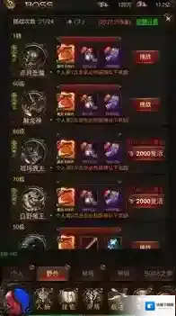 挑战野外BOSS有机会获得红色装备及红色装备碎片,同时还可获得精炼石和金币奖励。